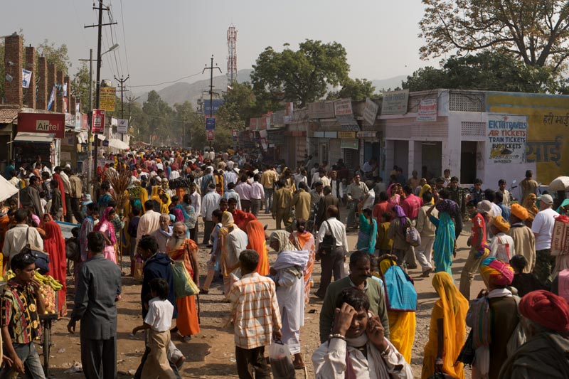 This is a crop of a much larger Pushkar street panorama. The crowded streets were more crowded because the Camel Fair and religious pilgrimage had ended the day before and people were leaving.